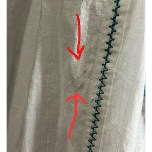 FLAWS: there are scuff marks (someone probably dropped on the dressing room floor) on the front left side of the top. These can be seen emphasized with the red arrow in the last three pictures. I did not attempt to remove them.