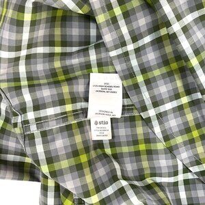 Stio Eddy Tech Shirt Mens Medium Green Plaid Long Sleeve Pearl Snap UPF 50+