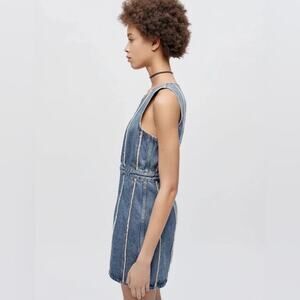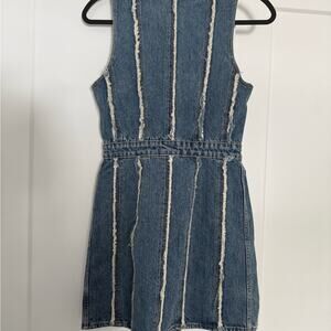 The Fray Denim Dress is constructed from our iconic 60s inspired rigid denim. The wash features a golden brown tint and long fray details.