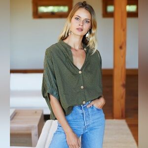 Emerson Fry Mandarin Collar Top Moss Swiss Dot Organic Size One Size
