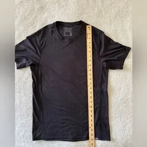 Sleek black tee with short sleeves. Ideal for casual wear. Soft and comfortable fabric.