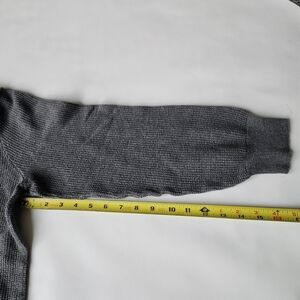 This shirt/sweater is labeled a large but it fits a small. The arms are a bit short.