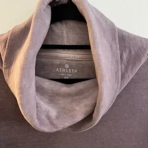 Athleta Eco Wash Turtleneck Sweatshirt Dress. Thumb holes in sleeves and two front pockets. Great condition. The color is a lavender distressed grey.
