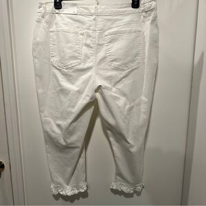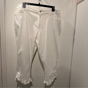 NEW Elegant White Cropped Jeans with Ruffle Hem Hi-Rise 18w