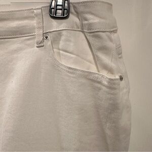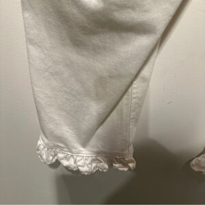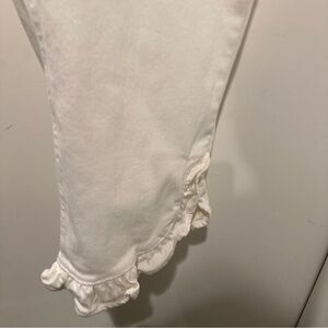 NEW With Tags Elevate your style with these elegant hi-rise white cropped jeans featuring a charming ruffle hem. Perfect for adding a touch of sophistication to your casual wardrobe.