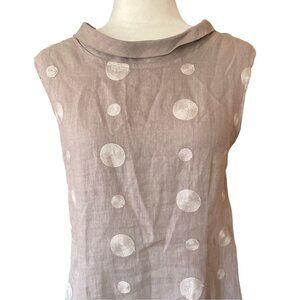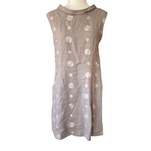 Lina Tomei Italian Linen Grey Embroidered Shift Dress Sz M