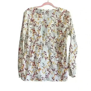 Eddie Bauer Leaf Print Peasant Blouse Fall Foliage Keyhole Cotton Size Medium