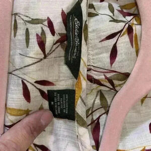 This Eddie Bauer peasant blouse is a must-have for your fall wardrobe. The blouse features a beautiful leaf print in beige color, made from high-quality cotton material. It comes in size medium, with a regular size type for women. The blouse is perfect for any casual occasion, and its keyhole design adds a touch of elegance to the overall look. The blouse is part of the Eddie Bauer brand, known for its excellent quality and style. It is suitable for any season, especially fall, and its peasant theme adds a touch of vintage to your outfit. The blouse is perfect for any top category, and it will surely be a great addition to your women's clothing collection.
