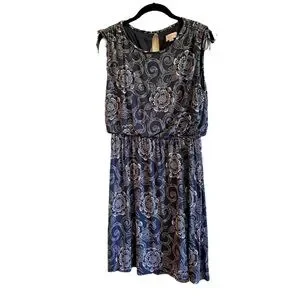 LOFT, CASUAL, SLEEVELESS DRESS IN BLUE PRINT,WITH TOUCHES OF PINK & WHITE.SIZE M
