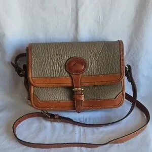 Vintage Dooney & Bourke Classic Tan and Brown Leather Crossbody Bag