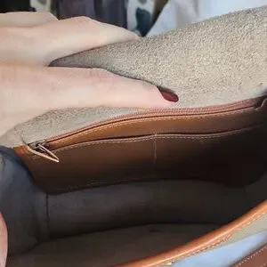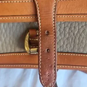 Elevate your style with this classic tan and brown Dooney & Bourke leather crossbody bag. Perfect for any occasion, this bag combines elegance and functionality. Last two pictures show imperfections.
