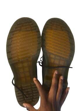Good pre-owned condition. The soles show very minimal wear. There is light scuffing/transfer marks on the inner heels as shown in photos. Patent leather remains shiny and structural. Size Men’s 7/Womens 9