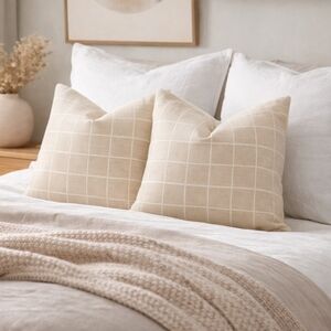 Throw Pillow Cover 2 pack 20x20 Windowpane Grid Pattern Cream & White Chenille