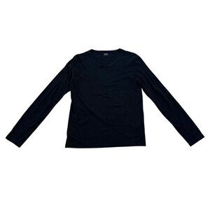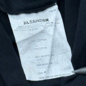 Timeless minimalist long sleeve tee from Jil Sander in classic black cotton. Made in Italy with a clean, refined silhouette and high-quality construction true to the brand’s understated luxury aesthetic. Lightweight and versatile layering piece that pairs effortlessly with denim, trousers, or tailored looks. Subtle designer staple with a sleek modern fit. Light wear consistent with age.