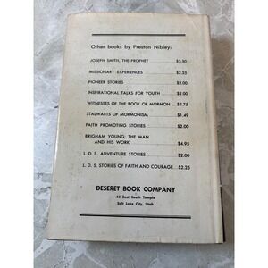 The Presidents of the Church by Preston Nibley, published by Deseret Book Company in 1960. This ninth printing of the 1941 copyright provides biographical sketches and historical accounts of the leaders of the Church of Jesus Christ of Latter-day Saints, including David O. McKay. The hardcover volume includes its original dust jacket, which shows significant wear including chips and tears, while the internal pages remain clean and well-bound. A valuable resource for those interested in LDS history and the lives of its early prophets.