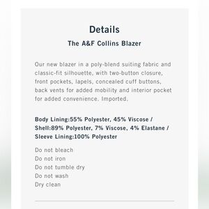 The A&F Collins Blazer Size 38 Regular, Color: Navy Texture