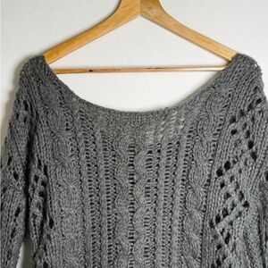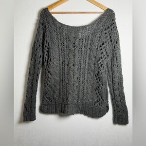 Free People Women’s Chunky Open Cable Knit Mohair Wool Blend Sweater Gray Sz M