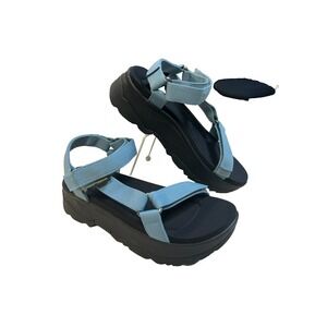 Teva Universal Platform Wedge Sandal Blue Hook Loop Closure Black Platform SZ 8