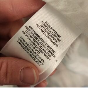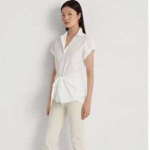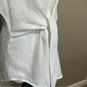 Women’s size large Ralph Lauren, linen ,concealed button, short sleeve, cuffed tie, front blouse, white color, great condition5059