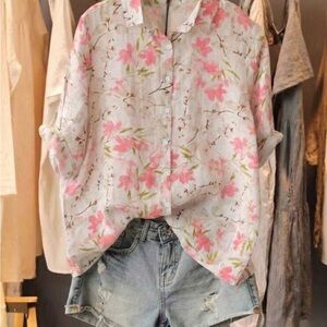 Floral Pink and White Women's Top