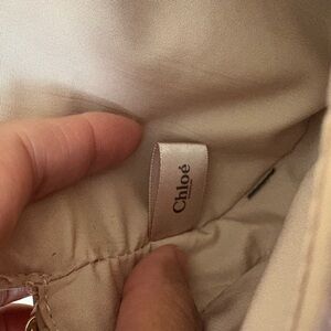 Chloé Light Pink Pebbled Leather Small Clutch Logo Accent Wrist Strap