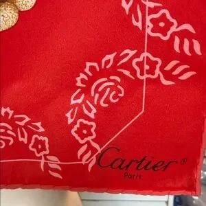 Measures 25x26. 💯 silk with hand rolled and stitched edges. Great condition. Love the Cartier split across the middle. Vintage Cartier Paris Couture. 🔥