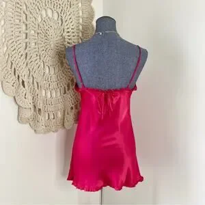 Victoria Secret Angels Red Satin Ruffle Chemise Slip Size Small
