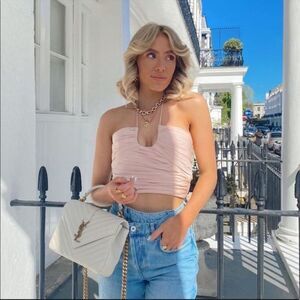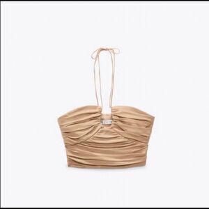 ZARA SATIN EFFECT DRAPED HALTER TOP
