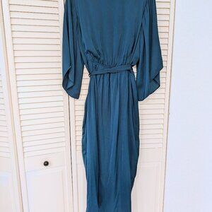Pre-loved Faux wrap style, midi-length, shiny satin fabrication and elbow length puff sleeves. Worn only once! It no longer fits me sadly.