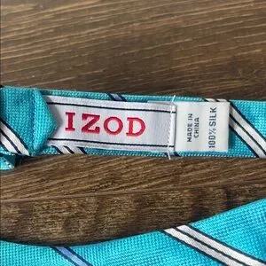 1️⃣ Turquoise & White Striped Silk Bow Tie – IZOD