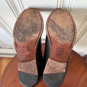 Step into style with these sleek black leather riding boots by Frye. Perfect for any occasion, these boots offer both comfort and elegance. In great condition. Please see all photos.