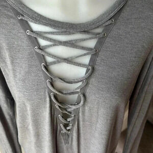 Rare - Discontinued line One Eleven by Express long sleeve gray top with tie/string in front. string can be adjusted to make looser or tighter under the shirt