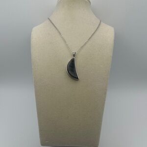 Stunning silver 925 moon shaped labradorite pendant necklace. Pendant has a gorgeous and prominent rainbow flash. The pendant is about 1” tall and 1/2” wide. It has a silver case and silver 925 bail. It comes with a silver 20” box chain.