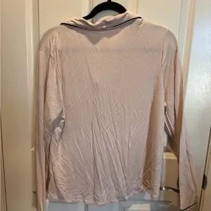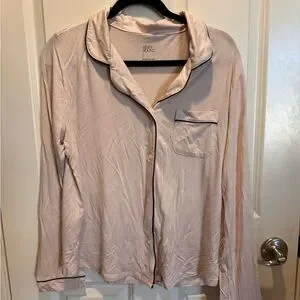 Soft cream pajama set with elegant black piping. Relax in style and comfort.