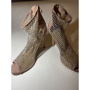 Vintage Bisou Bisou Leather shoes size 8 Pink Crystal Stone Womens Prom Shoes