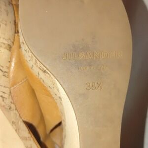 Jill Sander Platform Cork Wood Leather Slingback Sandal 38.5 Neutral Warm Tan