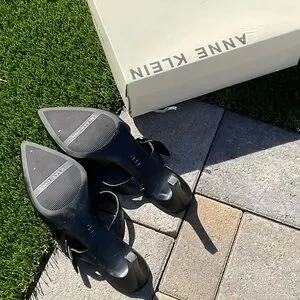 Anne Klein Black Leather Mules