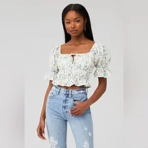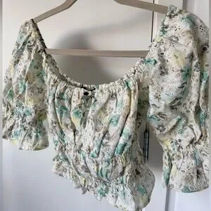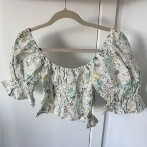 MinkPink Floral Puff Sleeve Top Size S (stretch material) Never worn (didn’t come with tags on)