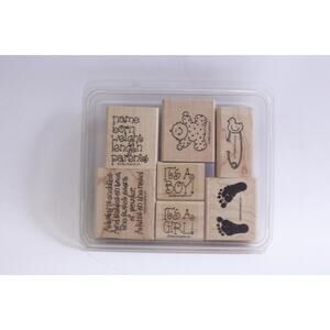 Introducing the adorable New Baby Stamp Set by Stampin Up! Celebrate the arrival of precious bundles of joy with charming designs like little feet, cute boy and girl motifs, and customizable options for names, birth details, and proud parents. Craft heartwarming, personalized cards with these high-quality rubber stamps. Welcome the new arrivals in style and cherish the memories forever with this delightful set, perfect for all your card-making needs. Get yours now and spread the joy!