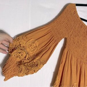 Petal Roz Yellow Smocked Off Shoulder Puff Sleeve Lace Trimmed Blouse L Whimsigoth Whimsygoth Fairycore Cottagecore Coquette Boho