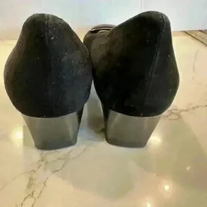 BRUNATE WOMEN'S SUEDE EFFECT FLATS-BLACK-with SILVER BUCKLE SZ 38(EU)