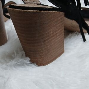 STEVEN By Steve Madden Luisa Black Ankle Strap Open Toe Fringe Block Sandals 8B