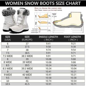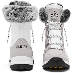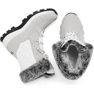 Women’s White Waterproof Snow Boots Mid-Calf Faux Fur Lined Non-Slip