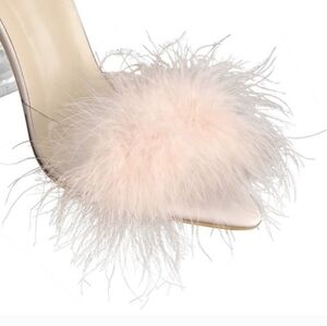 Step out in style with these elegant cream heels featuring a chic feathered design. Perfect for any occasion.