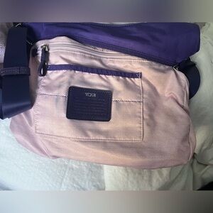 TUMI Voyageur purple crossbody bag in excellent used condition. Pink fabric interior.