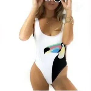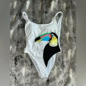Kenny Flowers White and Black One Piece Swimsuit with Toucan Design sz small