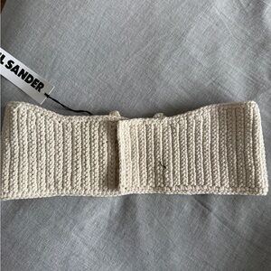 Elevate your wardrobe with this elegant cream top from Jil Sander. Perfect for any occasion, its timeless design ensures you stay stylish and comfortable. You can wear it on top of the blouse like the last photo.
