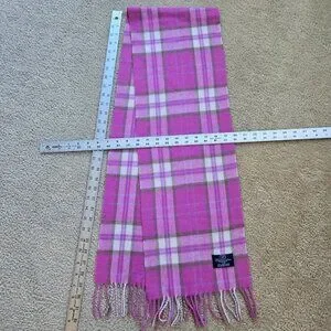 Woven in Scotland. This 100% lambswool scarf is a beautiful lavender plaid. No damage, no odors, no pilling. Excellent unworn condition.