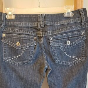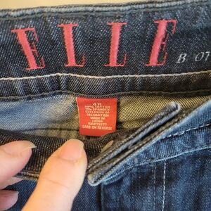 Elle stylish dark blue jeans with a flattering bootcut & white silver stitching! Ideal for casual wear. Size 4R, No visible signs of wear! No fading or tears!