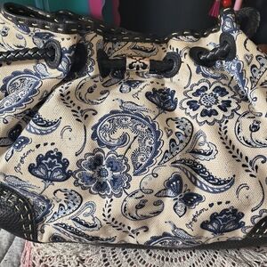Brighton Bucket Tote Canvas Floral Blue and Black Women's Bag Denim Interior